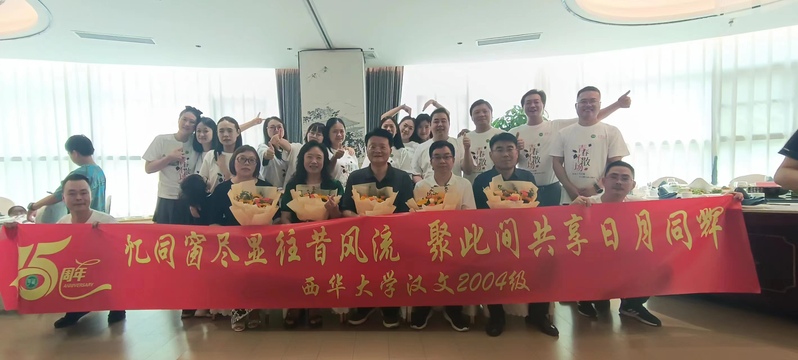 2023年7月22日,伟德国际1946,Bevictor伟德,伟德官网04级汉文组织举办15周年同学聚会,昔日的老同学们共赴“十五沧桑情依旧,桃李携手恩师情”的人生之约,一起怀念美好时光。学院院长潘殊闲,学院党委副书记、纪委书记徐攀,辅导员徐薇老师,任课教师王方、张雪梅老师受邀出席。