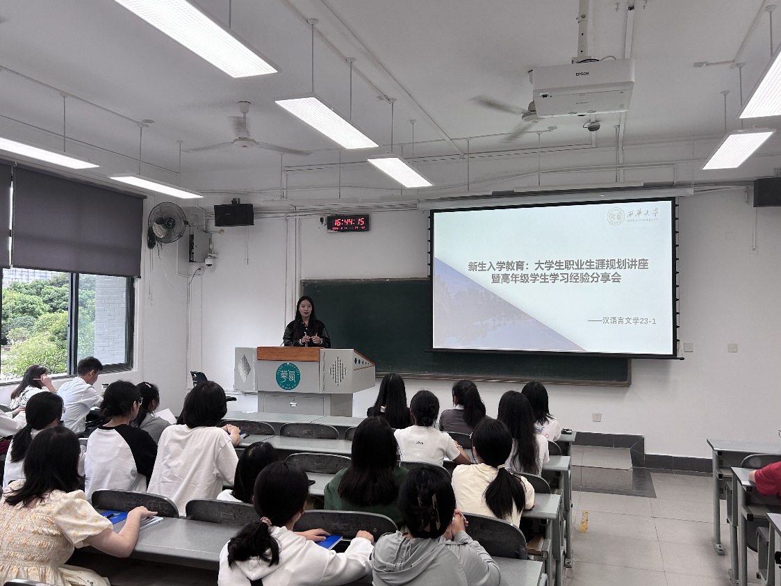 9月11日下午16:00,伟德国际1946于6C217教室召开新生入学教育—-大学生职业生涯规划讲座暨高年级学生学习经验分享会。分享会邀请了学院优秀本科生和研究代表参加,学院汉语言文学专业2023级同学参加分享会,辅导员任焦阳老师主持会议。
