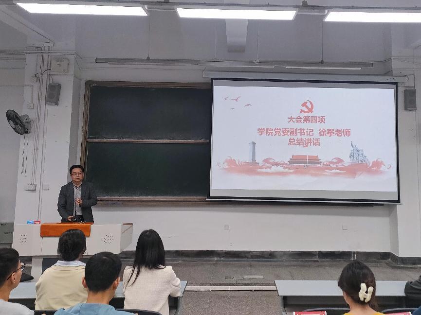 10月17日中午,学院在6B108举行2023年秋季学期入党积极分子培训班开班仪式。学院院长潘殊闲、党委副书记徐攀、各学生党支部书记、学院党校协管员团队与全体学员参加本次大会。在党校全体学生干部、党校学员分别庄严宣誓后,学院党委副书记徐攀老师总结讲话,他对学员们提出了三点希望:希望学员们明确培训目的,认真学习党的理论知识,坚定理想信念;希望学员们严格遵守学校、学院党校培训纪律,踏踏实实完成培训任务;希望学员们加强实践,争取早日入党。