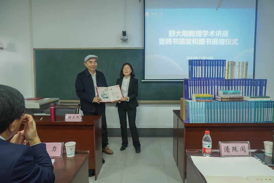 西华大学党委副书记张力为舒大刚颁发聘书