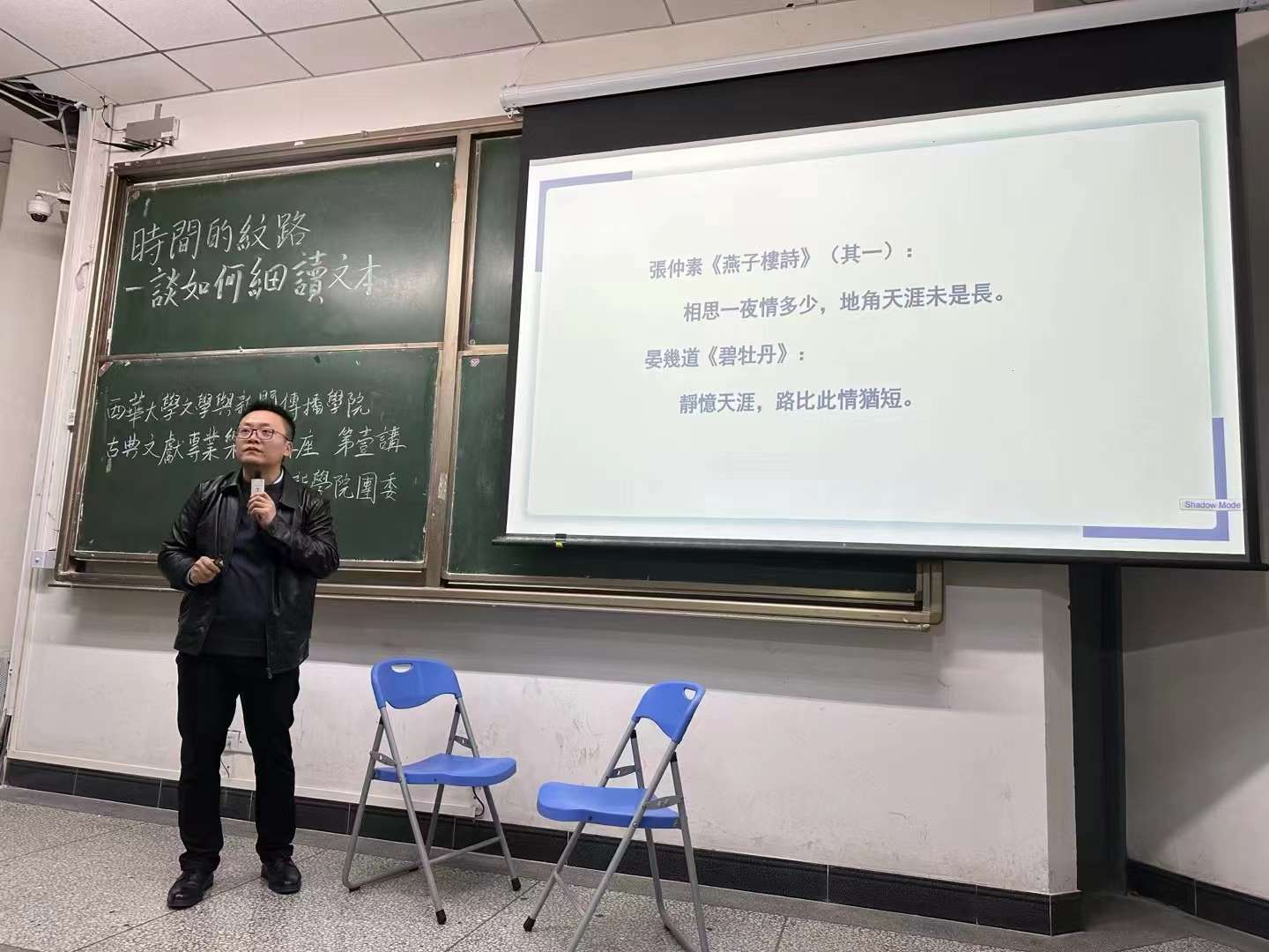 2023年12月14日晚7点,伟德国际1946,Bevictor伟德,伟德官网古典文献学专业“乐道”讲座第一讲“时间的纹路——谈如何细读文本”在第四教学楼A107顺利举行。本次讲座由文新学院团委主办,我院王珂副教授主讲,团委书记任焦阳老师主持,王燕飞副教授与谈。听众们是来自西华大学、西南交通大学的博士研究生、硕士研究生和本科生。