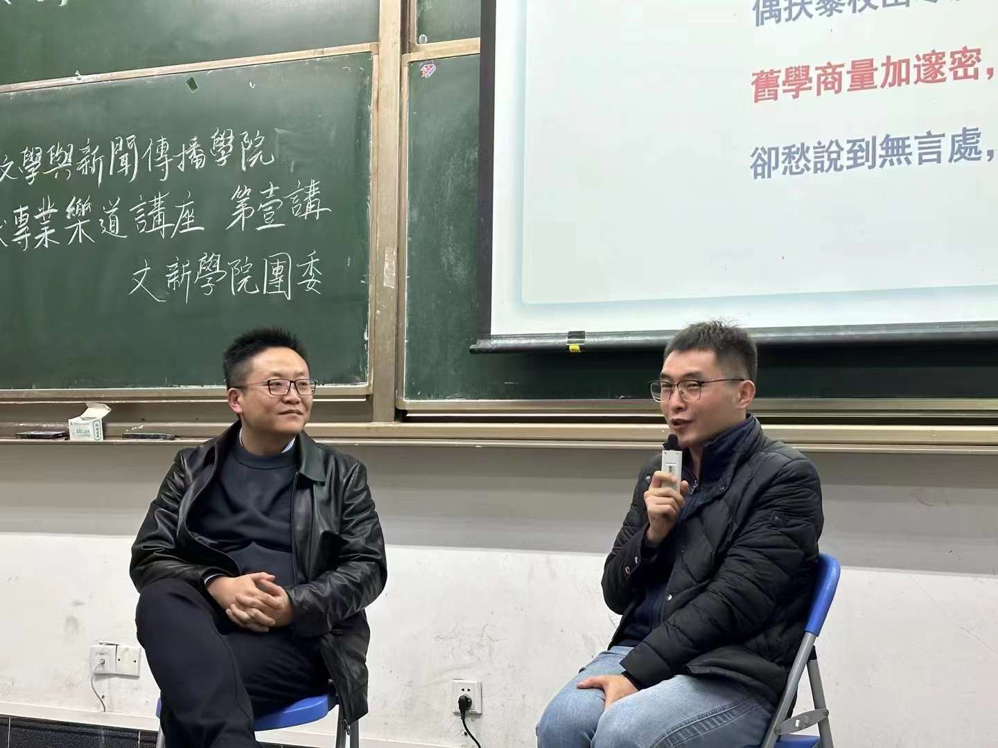 演讲结束后,王珂老师与王燕飞老师围绕细读文本的经历展开了精彩的对谈。两位王老师从《诗经》迤逦而下,谈到汉乐府、《西游记》、《简爱》、鲁迅《祝福》、张爱玲《倾城之恋》等经典作品,与同学们分享读书的发现与快乐。