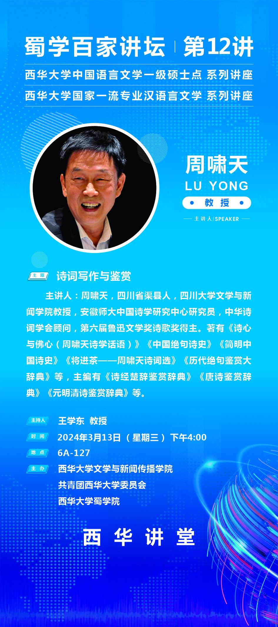 讲座预告:蜀学百家讲坛 | 第12讲——诗词写作与鉴赏