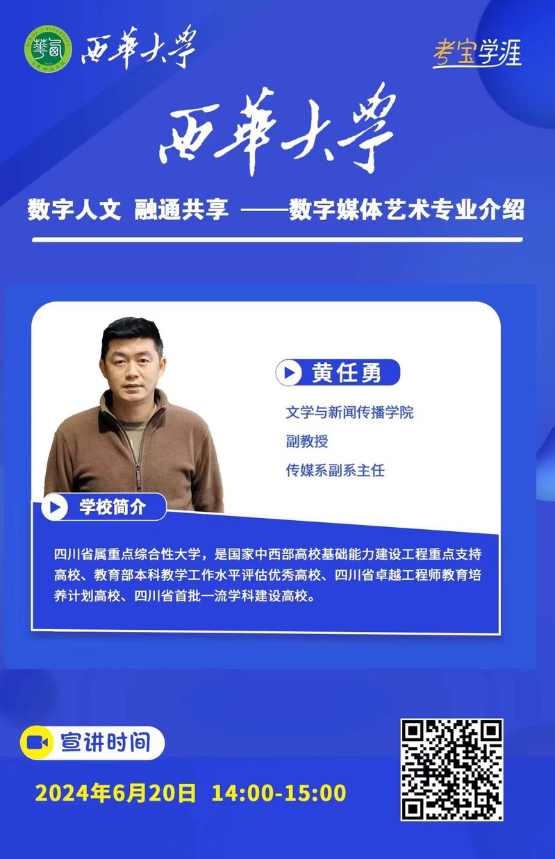 边界突破 全媒赋能 中国故事-----网络与新闻媒体专业介绍即将开始,如需要了解,请自行扫码登录,支持直播回放。