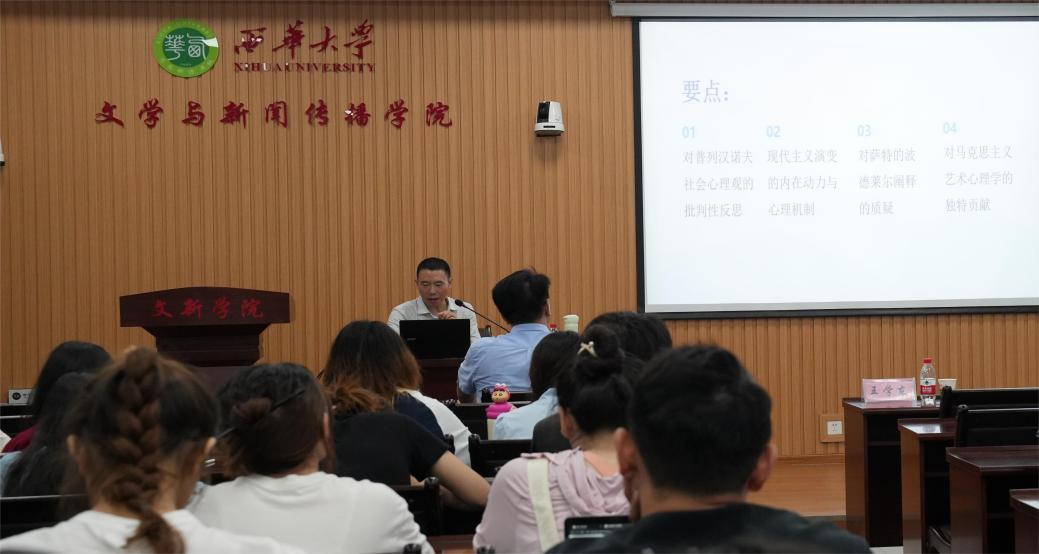 6月19日19:30,伟德国际1946在6A127会议室开展了题为“苏佩克的新马克思主义心理学阐释”的学术讲座。四川大学傅其林教授担任主讲人,院长潘殊闲、团委书记任焦阳出席讲座,学院本科生、研究生代表参加讲座。讲座由潘殊闲院长主持。