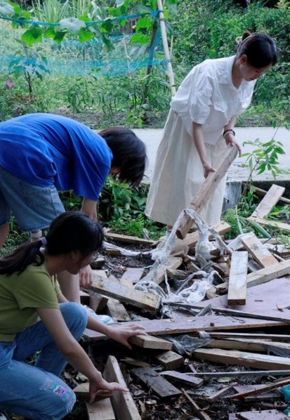 宣讲团成员帮助村民搬运木材宣讲团通讯员彭楚妍拍摄