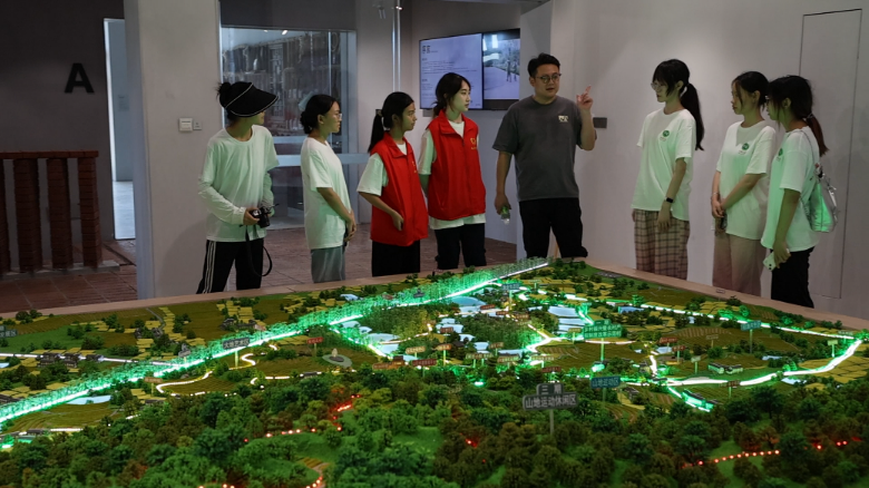 姜超超老师与实践团成员共观安石布局模型 中国青年网通讯员林紫阳供图