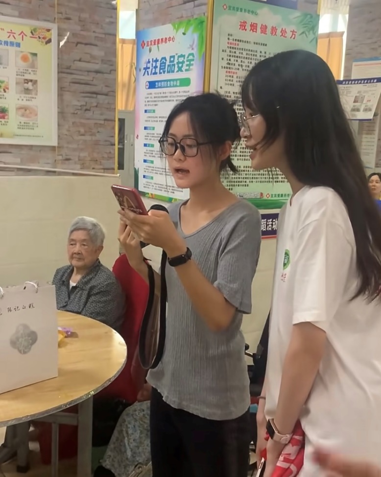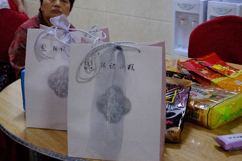 对养老中心有了更加具体的了解后,实践团为老人们送上了精心准备的慰问礼品。其中最受老人们喜爱的是实践团成员于李庄古镇购买的特产——白糕。成员们之所以选择白糕作为礼品,是因为白糕绵软爽口、香甜悠长,且具有补中益气、健脾养胃的功效,很适合老年人食用。