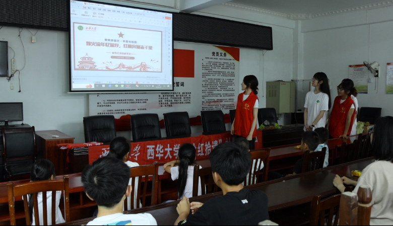 7月15日早上8点,实践团来到十里村与洪队长对接活动内容。在洪队长的帮助下,“捻红拾遗”实践团借用社区服务站的会议室作为知识宣讲场地,并积极组织小朋友们到场听讲。