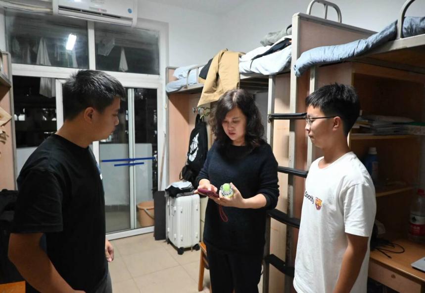廖秀美老师重点检查了寝室安全隐患,她强调,安全是学习和生活的基础,没有安全就没有一切,每位同学都应负起责任,共同营造安全和谐的居住环境。在现场,廖秀美老师还介绍了电器安全使用技巧和寝室防火防盗措施,并就如何预防安全事故等问题为同学们提供了具体的指导和建议。她指出,校院两级高度重视学生安全工作,将尽最大努力守护同学们的身心安全,希望得到同学们的支持和配合,形成合力,共建安全校园。最后,她鼓励大家在课余时间积极参加消防安全演练、急救知识培训等校园安全教育活动,持续提高自我保护和应急处理能力,学习实用安全技能,增强自身安全意识。