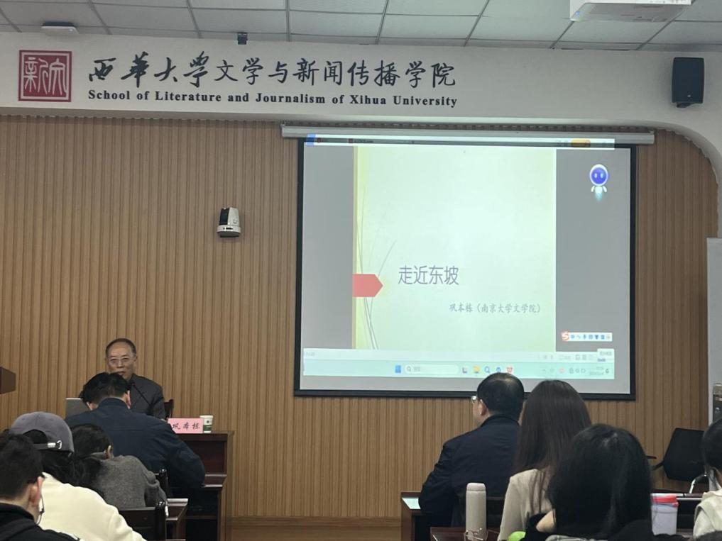 11月4日下午16:00,南京大学文学院巩本栋教授应我院邀请莅临“蜀学百家讲坛”,作题为“走近东坡”的学术讲座,学院院长潘殊闲教授出席本次讲座,学院相关学科教师,各年级本科生、研究生参加讲座,学院院长潘殊闲教授担任主持。