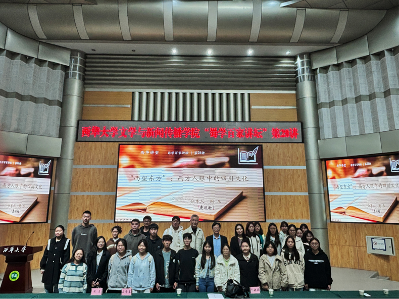 11月6日下午14:00,周东教授应邀到我院进行讲座,讲座主题为“‘西望东方’:西方人眼中的四川文化”,学院副院长王学东教授出席并主持本次讲座,学院相关学科教师,各年级本科生参加讲座。