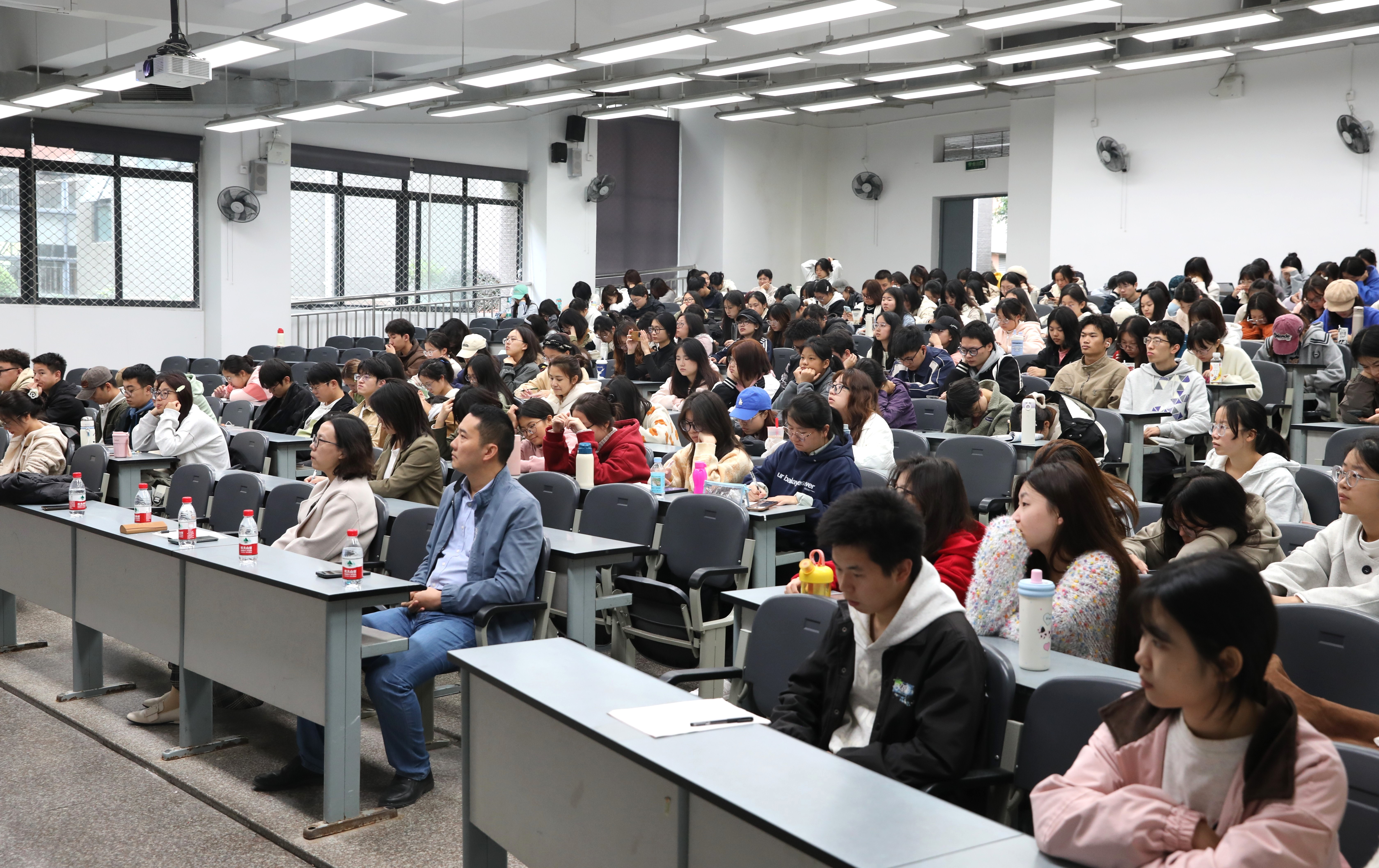 随后,张利从三方面展开讲解。创新创业方面,他提出应合理借助相关政策支持,降低高风险项目投入,增强项目抗风险能力。学科竞赛方面,他介绍并推荐了几个适合文科社科类同学参与的竞赛项目。其间,他着重强调了参赛项目筛选和参赛团队组建的重要性。他指出,筛选参赛项目需遵循差异化细分领域的总体原则,并做好充分的前期准备;组建团队要秉持“跨学科组队”原则。典型案例方面,他以果盛宝和璀璨康巴项目为例深入剖析,阐述成功打造竞赛项目的方法。最后,他点明创新创业竞赛对大学生的重要意义,并鼓励学院学生积极参与,争取在未来取得更优异的竞赛成绩。