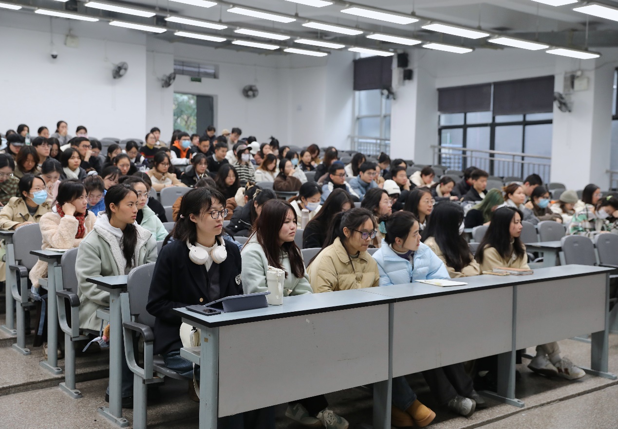 会上,徐攀首先对当前就业形势进行了深入分析。他指出,在日益激烈的就业市场中,同学们要树立正确的就业观念,积极迈出就业步伐。他鼓励毕业生们要敢于尝试,勇于实践,自信有为,不断提升自己的综合素质和就业竞争力。针对如何做好求职准备他给出了具体建议。他强调,简历要突出个人亮点,面试要自信表达,同时要关注招聘信息,拓宽就业渠道。此外,他还特别提醒同学们要注意防范就业陷阱,保护自身合法权益。
