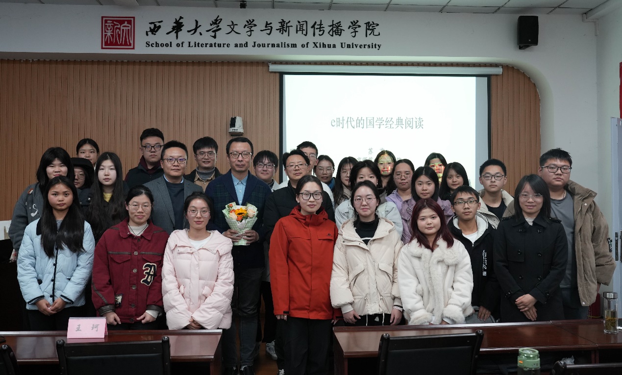 讲座的最后,苏老师指出,e时代的背景下,获取古代经典阅读资源的途径愈加多元,研读经典的条件变得异常便利,作为中国语言文学的学生,大家应当在阅读过程中作出各种新的探索,充分借助数字技术条件,汲取优秀传统文化资源。