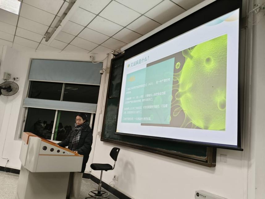 在班会上,班长柏俊兰带领同学们学习了艾滋病的基本知识。比如:艾滋病感染后的发展过程、艾滋病病毒的传播途径等等。同学们了解到,握手、打喷嚏、蚊虫叮咬等行为不会传播艾滋病,所以日常生活接触不必过多担心。此a外,同学们还学习了如何预防艾滋病:如进行高危行为后要进行检测、不能和别人共用注射器吸毒、育龄妇女预防感染艾滋病等相关知识。