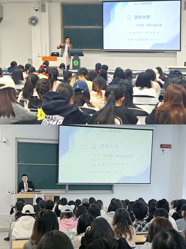 325日、27日,学院为宜宾校区与本部校区400余名学生开展求职技能专题指导活动,特邀维纳教育首席面试官朱培担任主讲。活动以“理论精讲+情景模拟+个性诊断”多维模式展开,助力学生破解求职难题,提升职场竞争力。