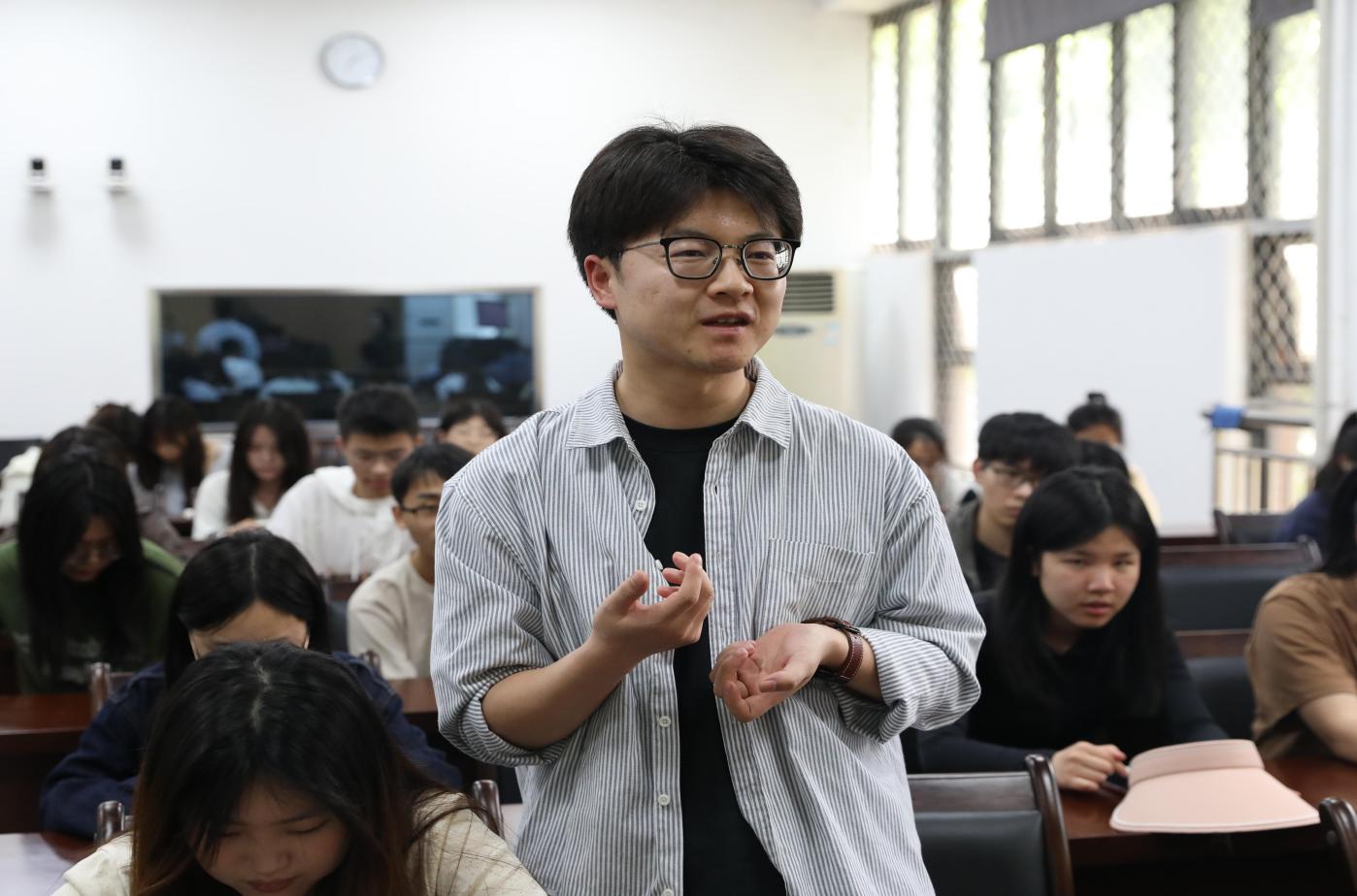 互动环节,三位学生分别从“AI写作的运用”“现代诗的当代生存空间”“网络小说的文学性”等三个方面与胡教授交流。胡伟教授指出,应积极拥抱AI、合理利用AI,拓展视野、创新思维;对于现代诗,他主张写诗是为自己而写,鼓励学生勇敢创作;网络小说方面,他既肯定了其激发群众写作热情的积极性,也指出其同质化严重的缺点。最后,他强调创新的重要性,提出了“AI+网络文学”的新模式,希望借新工具、新载体使文学产生无穷力量。