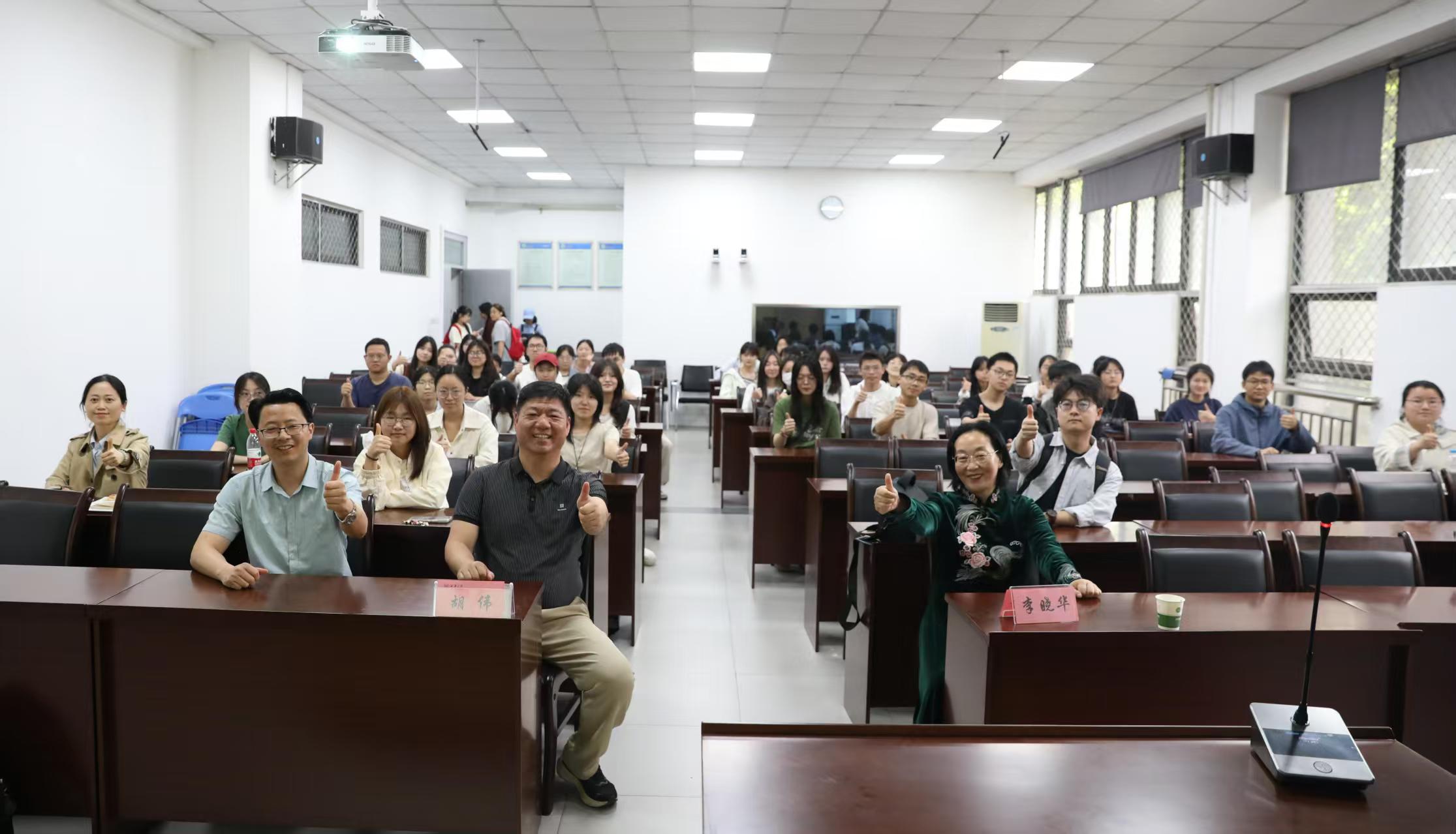 讲座现场旋即转入沉浸式艺术场域。当《奋斗者年轮》的铿锵旋律响起,大屏幕轮播着胡教授学术生涯的珍贵瞬间;《漠河之恋》的悠扬曲调中,家庭影像编织出知识分子的家国情怀;《山水文心》的古典韵律则串联起学术共同体的精神图谱。这场视听盛宴突破传统讲座范式,使抽象理念在音符跃动中具象为可触可感的心灵共振。