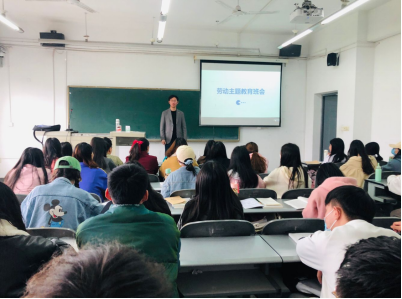各班级通过多种形式开展了一系列劳动实践活动,形式多样,让同学们切身地感受到劳动的重要性。在主题班会上,通过观看劳动教育短片、讲述劳动者故事、收集劳动名言等方式积极讨论、交流劳动的意义,其中,2020级中国语言文学类的陶杰和宋欣宇同学分享到:“一个国家的底气来自于为社会发展默默奉献的劳动者,来自于勤劳、诚实和创造性的劳动。每一位同学都应当树立“劳动最光荣,劳动最美丽”的正确理念,通过劳动创造美好未来”。