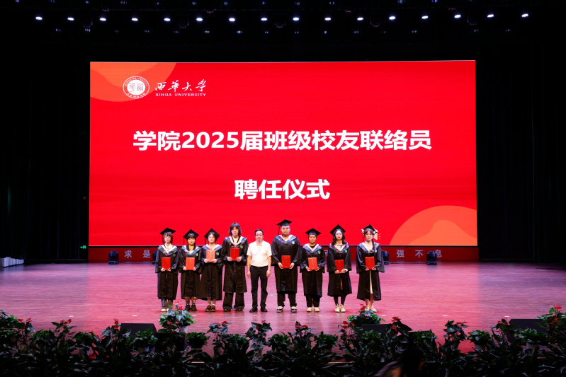 在庄重肃穆的国歌声中,典礼拉开帷幕。首先是2025届班级校友联络员聘用仪式,学院党委书记张雯欣为他们颁发了聘书, 并向受聘人员表示祝贺。