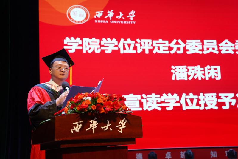图4 潘殊闲院长宣读学位授予决定(宜宾校区)
