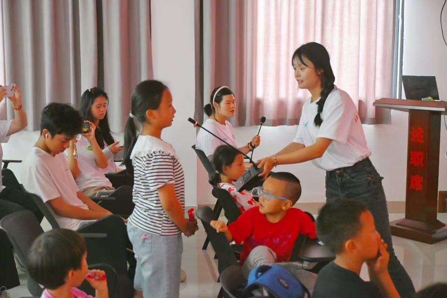 针对四川方言区孩子平翘舌音难掌握的问题,实践队员通过卡片讲解、单字练习、绕口令等方式帮助纠正,课堂氛围热烈。
