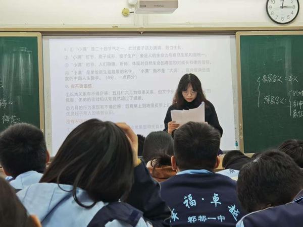 廖和雨:在郫都一中实习期间,我完成了从听课到独立进行教学设计,再到站上讲台面对四十多位同学进行教学的过程,仿佛完成了从爬行到站立再到奔跑的成长。感谢我的指导老师们,他们给予了我很多机会,让我能够自由选择教学篇目,完成戏剧《雷雨》——文言文《谏太宗十思疏》——文本联读《青蒿素·人类征服疾病的一小步》《一名物理学家的教育历程》——学习活动《信息时代的语文生活》等不同形式的文本教学。老师们耐心的帮我指出教学设计中的不合理之处,给予我宝贵的建议。在我完成教学之后,他们也会在课下为我提出改进建议,督促我及时的调整。