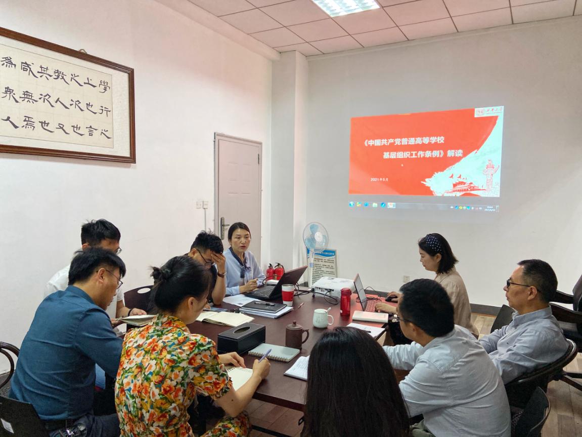 会上,王莉书记介绍了《条例》修订的背景、过程、意义和修订《条例》遵循的主要原则,带领大家逐条学习了《条例》内容,并重点对新修订的条款进行详细解读。学习过程中,王莉书记联系学校和学院实际对学院各支部如何贯彻落实《条例》规定提出了要求。