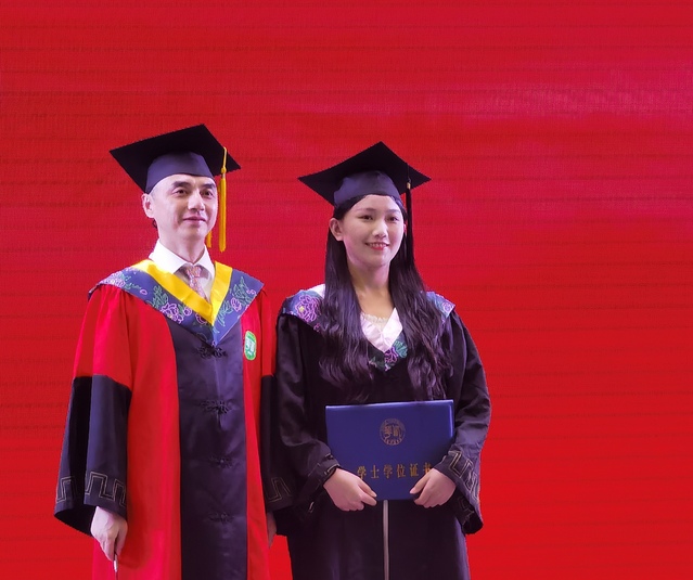 学院院长谢应光教授宣读了授位决定,并对学院2021届381名获得硕士、学士学位的毕业生表示祝贺。学校副校长李秋实教授则为学位获得者一一授予学位证书,并与学生合影留念,记录毕业时刻。