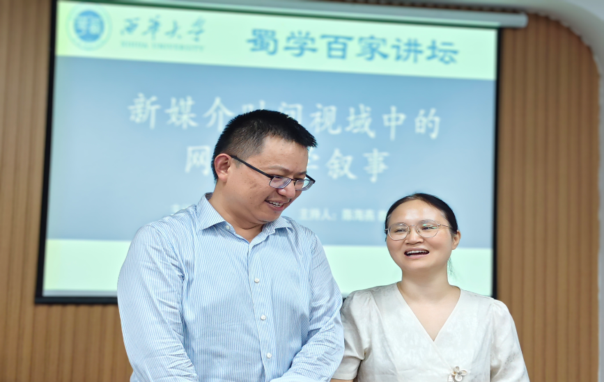 2025年10月10日下午13:30,网络文学研究领域权威学者、文学博士、二级教授、四川省学术和技术带头人、西南科技大学文学与艺术学院院长、四川网络文学发展研究中心主任周冰教授,应伟德国际1946邀请,莅临“蜀学百家讲坛”第41讲,作题为《新媒介时间视域中的网络文学叙事》的学术讲座,由陈海燕教授担任主持,本院师生共100余人参与。