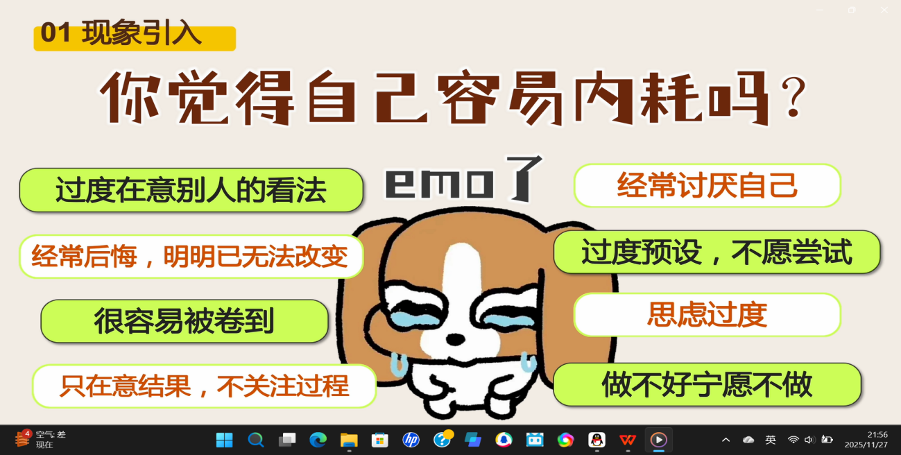 本次比赛以线上提交视频和线下笔试的形式开展。在笔试现场同学们自觉遵守纪律,认真细致作答,展现出扎实的心理知识基础和专业的职业素养。笔试内容涵盖心理健康基本理论、常见心理问题等,是对心理委员专业知识与实践能力的一次系统检验。除笔试外,本次初赛还设有线上班级活动策划展示环节。参赛选手围绕心理健康主题制作PPT,并结合心理学专业术语进行讲解阐述,同时设计相关的心理活动游戏方案。