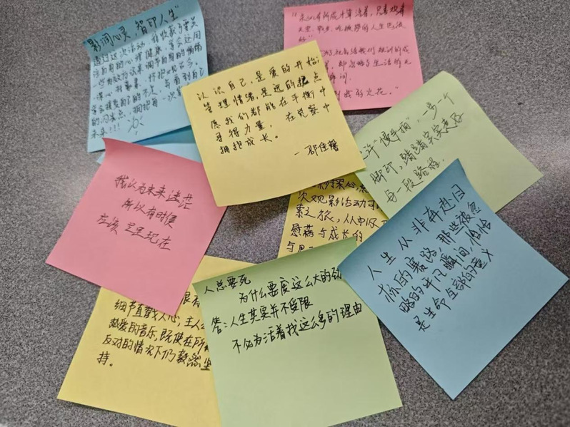 在活动的最后,同学们被影片内容深深触动,结合自身成长经历,深刻反思内在的心理境况。他们自发地写下对本次心理观影活动的感悟,以及对未来的美好期许。这一刻,大家不仅找到了与自我对话的钥匙,更在心中种下了积极向前的种子,期待未来能以更健康的心态迎接生活中的每一个挑战。