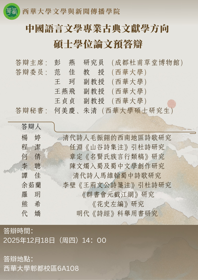[硕士预答辩]中国语言文学专业古典文献学方向2023级研究生学位论文预答辩