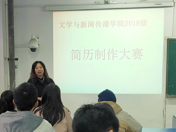 10月25日上午,18级汉语言文学专业举办了一场“简历制作大赛”。本次大赛于6A126教室举行,参加本次活动的有汉语言文学专业的全体同学及其辅导员徐薇老师。