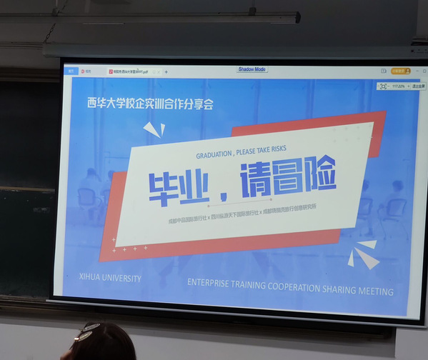 分享会针对2018级和2019级毕业生所面临的就业方向和就业热点问题,并为同学们提供实习就业机会。会上,李健讲述了成都中品国际旅行社、四川纵游天下国际旅行社、成都烧脑壳旅行创意研究所三家公司的基本情况,发展现状和特色优势。 详细讲解了大学生就业方向选择,希望同学们在工作中要摆正心态,踏踏实实,打好基础,切勿眼高手低、敷衍了事,以学习锻炼能力的心态工作,立足岗位锻炼自己,把知识转化为能力。最后为同学们提供了实习就业机会,期待有感兴趣的同学参与到这三个公司中,实现校企双赢。