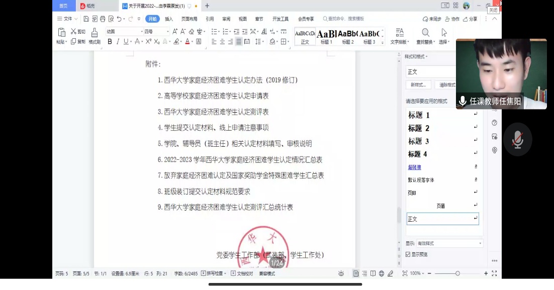 2022920日晚,2021级辅导员任焦阳组织召开2021级汉语国际教育、汉语言文学、网络与新媒体等专业学生困难认宣讲会,疫情期间,2021级全体同学利用腾讯会议参加宣讲会。