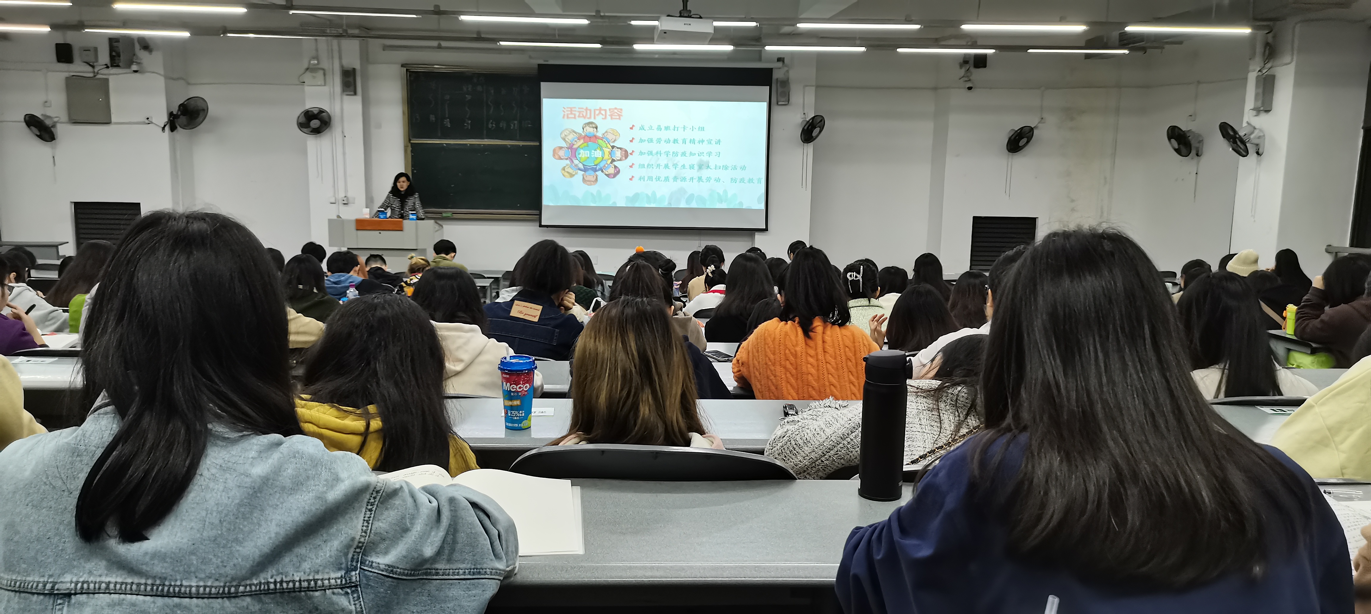 2022年11月6日19:00,学院汉语言文学、汉语国际教育、网络新媒体专业在6B-208教室召开劳动卫生和疫情防控专题班会。班会由辅导员廖秀美老师主持。