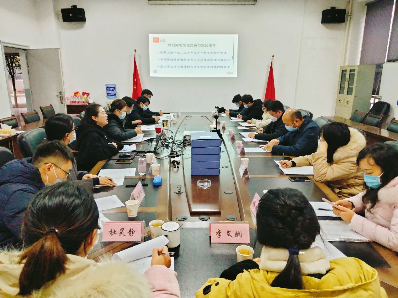 会议邀请了学校党委宣传部副部长陈彧出席,陈彧副部长以“推进文化自信自强,铸就社会主义文化新辉煌”为题带领大家学习党的二十大精神。