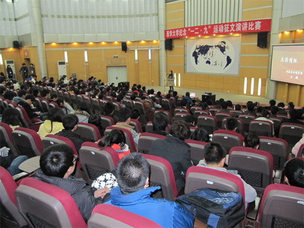 为纪念12·9运动76周年,丰富校园文化生活,培养当代大学生爱国主义精神,由共青团西华大学委员会主办、人文学院承办的纪念12·9运动76周年演讲比赛于12月9日19:00在四教报告厅举行,来自校本部及人南校区的19位选手参加了比赛。最终人文学院2011级汉语言文学学生赵璐、管理学院2011级工程管理学生李欣以优异的成绩脱颖而出,荣获一等奖。