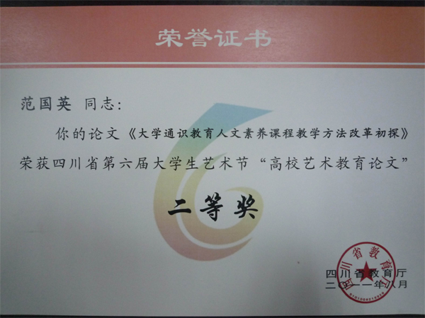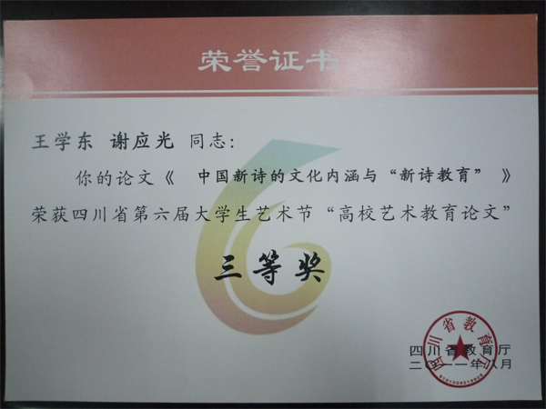 日前,从四川省第六届大学生艺术节传来喜讯,西华大学收获多个奖项。其中人文学院范国英老师的论文《大学通识教育人文素养课程教学方法改革初探》荣获“高校艺术教育论文”二等奖,王学东、谢应光老师的论文《中国新诗的文化内涵与“新诗教育”》荣获“高校艺术教育论文”三等奖,徐攀、王馨老师指导的学生宋彩萍的《〈行书五绝立轴〉送友人南行——王铎》荣获书法篆刻类(甲组)一等奖,同时徐攀、王馨荣获“优秀指导教师奖”。