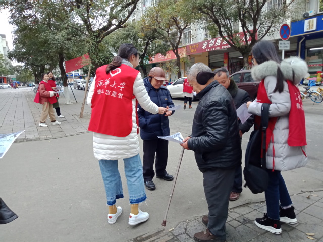 为增强居民对防艾知识的了解,建设和谐文明社区,12月8日,人文学院法律援助服务队前往郫都区红光街道合兴社区开展“青春无艾”禁毒防艾知识宣传活动。