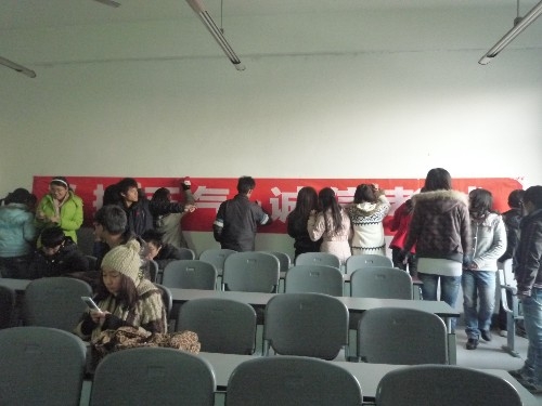 12月30日上午,人文学院2010级历史学1班在6C-116开展了关于“弘扬正气,诚信考试”的主题班会活动,班主任赵韦韦老师和历史学1班全体同学参加活动。经典电影《高考1977》将同学们带回到那一个值得回味的年代,同学们认真地观看了电影,从中深深领悟到诚信的可贵。最后,在赵老师的组织下,同学们在诚信考试的横幅上签名,保证诚信考试,诚实做人。