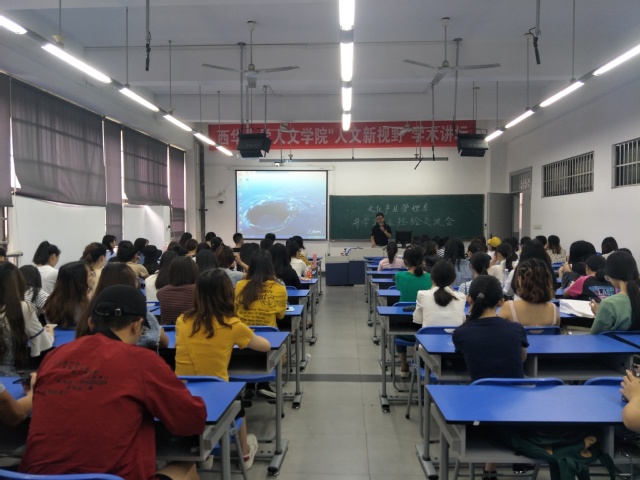 为使学生进一步明确未来的发展方向,6月14日上午,人文学院文化产业管理系特邀2014级文管系毕业生邓燕、闫欣瑞、邓文超、黄吉、何凯、陈鹤予、孙静在6A-126举行升学就业经验交流会。文管系各年级学生参加了此次交流会,文管系主任李钊担任主持人。