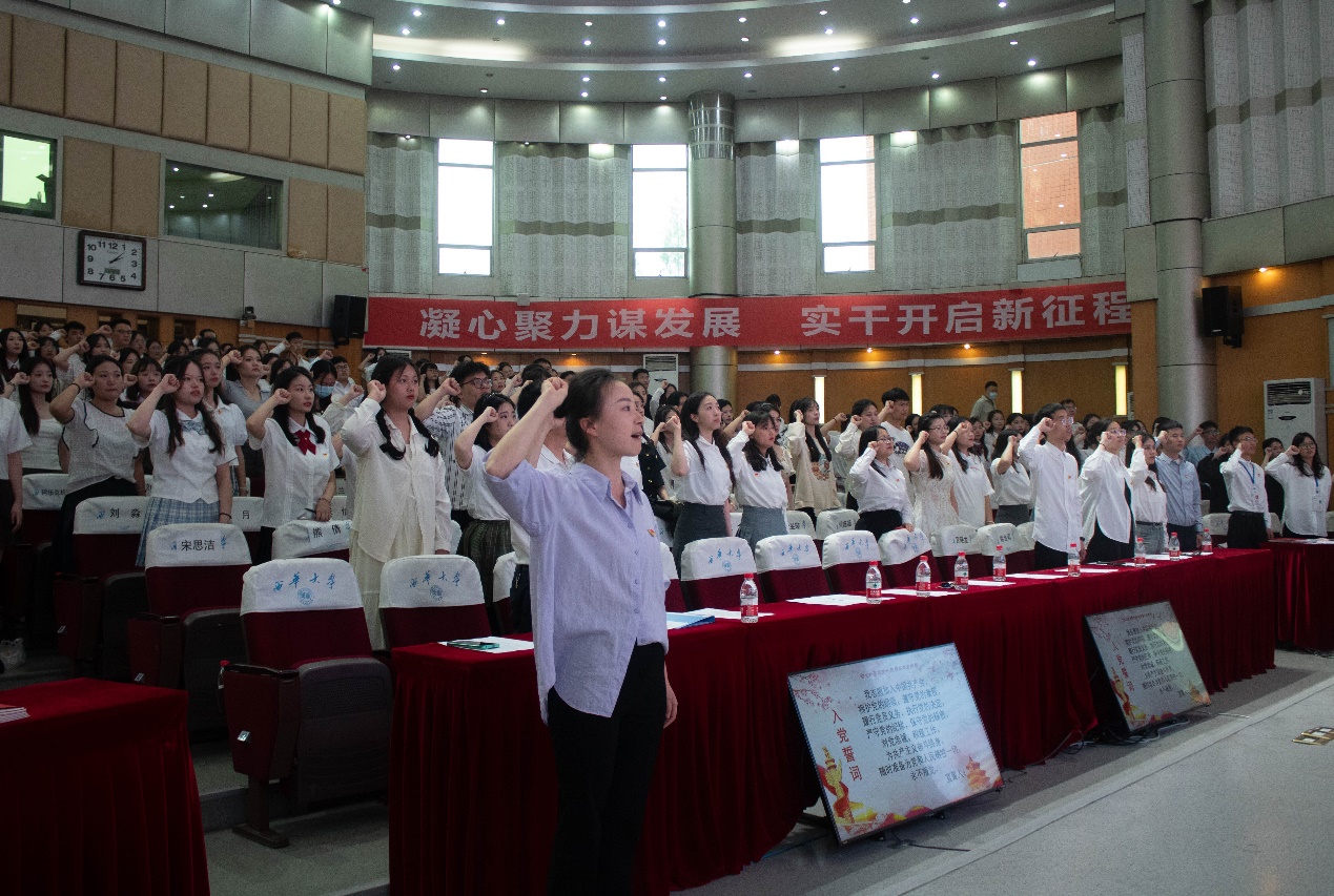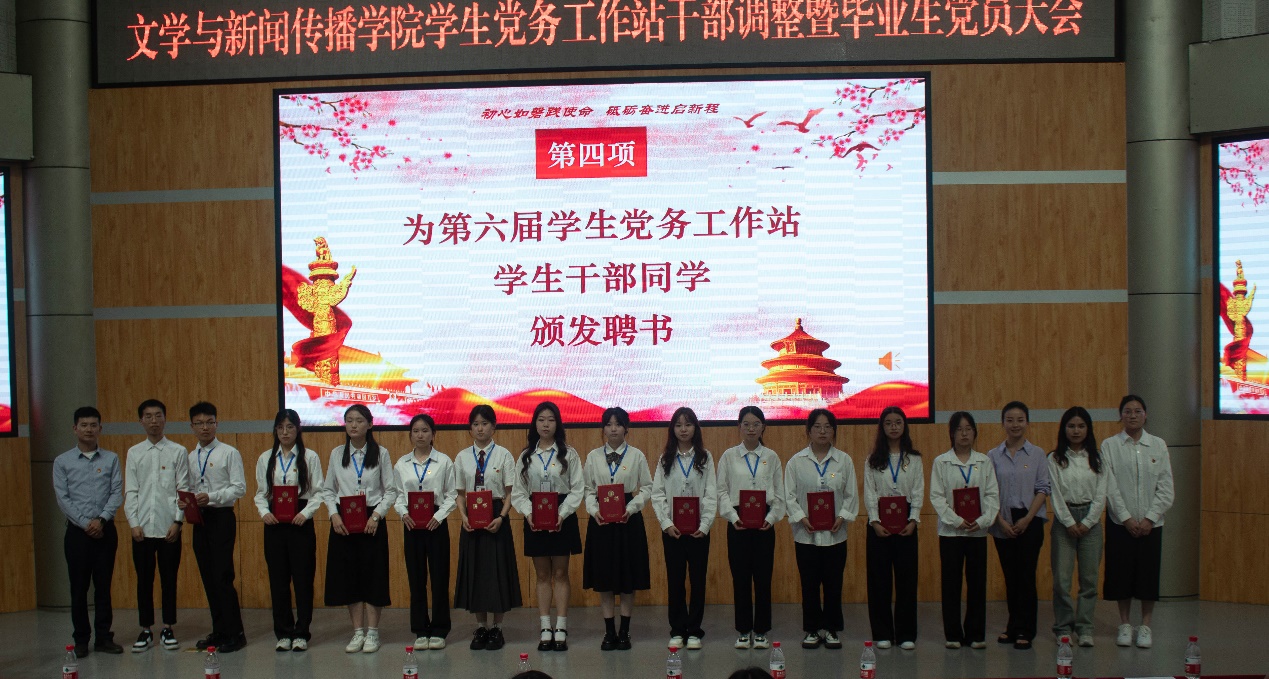 学院党委副书记徐攀宣读了新一届学生党务工作站干部名单,并为第六届学生党务工作站学生干部颁发聘书、合影留念。徐攀、秦婷、各学生党支部书记还为学院新发展党员赠送了党章,并由学生党务工作站指导老师秦婷带领新党员入党宣誓,党员重温入党誓词,与会人员举右拳,面对党旗,在声声铿锵中宣誓着自己的赤诚之心,表达了对共产主义事业奋斗终身的理想和信念。
