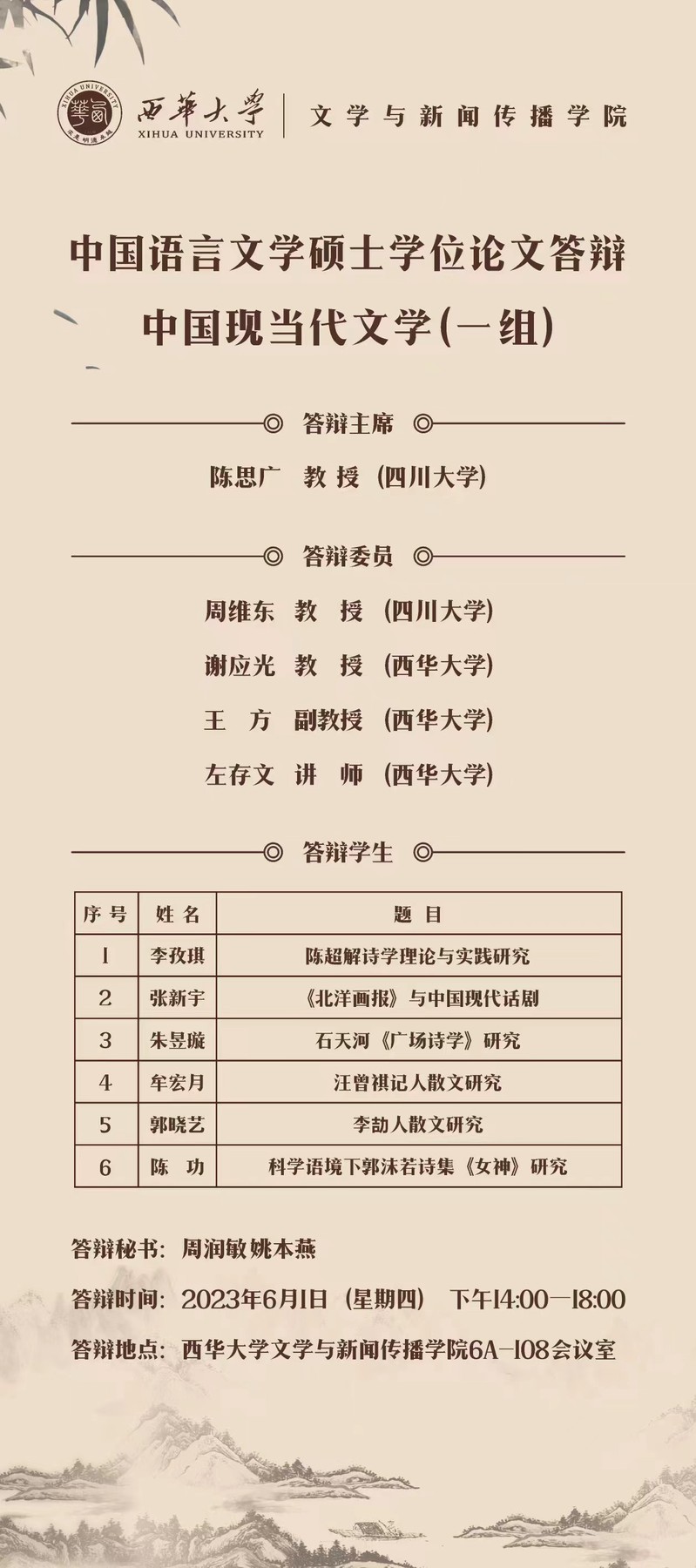 中国语言文学硕士学位论文答辩 中国现当代文学(一组)