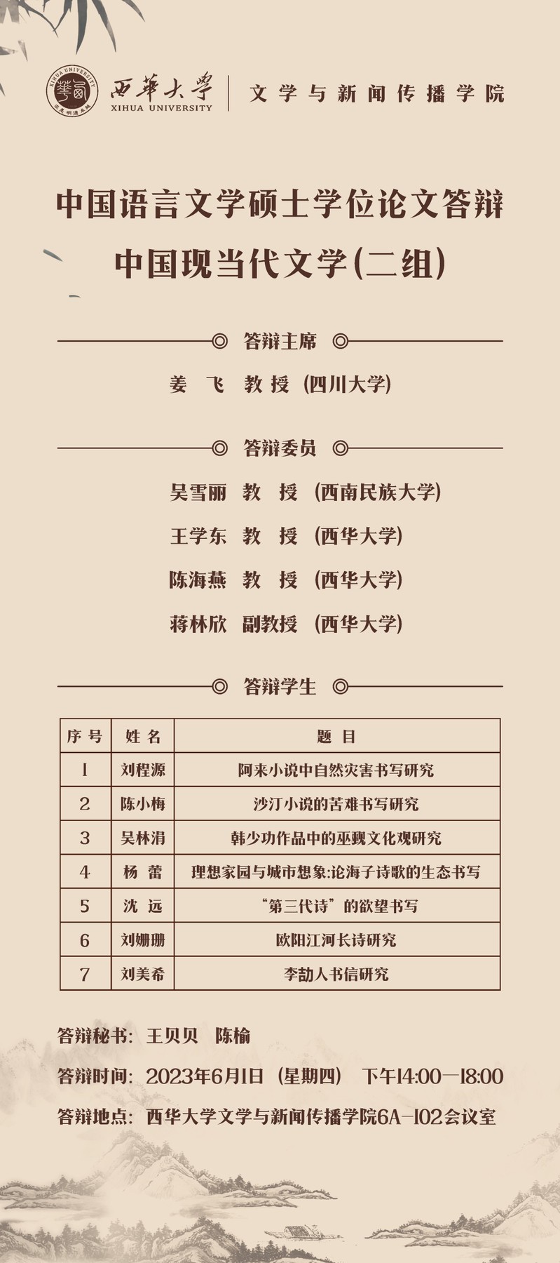 中国语言文学硕士学位论文答辩 中国现当代文学(二组)