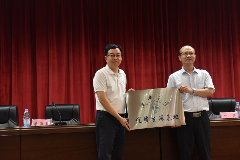 中江中学副校长梁海东对团队一行表示热烈欢迎,并对中江中学学生基本情况进行了详细介绍。徐攀对中江中学近年来为西华大学输送了许多综合素质较高的优秀学生表示感谢,并代表学校与中江中学签订了优质生源基地合作协议,现场举行了优质生源基地授牌仪式。