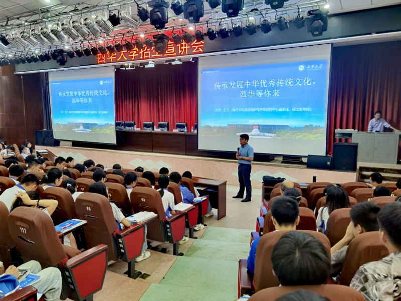 王方则以“传承发展中华优秀传统文化,西华等你来”为题,从当下的中华传统文化热、中华优秀传统文化在西华、传承发展中华优秀传统文化,西华等你来三个方面给同学们进行了宣讲。叶茂则以“到西华来,成就未来新媒体人!”为题,从什么是未来新媒体?我院传媒系发展历程以及专业设置和毕业生就业等方面进行了讲解,让同学们对学院各专业情况有了更进一步的认识和了解。